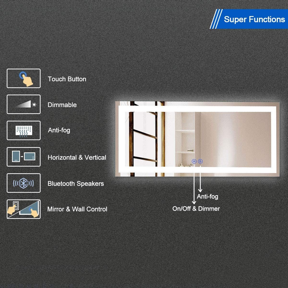 MIRROR AND WALL CONTROL: You can control it by touch button on the
